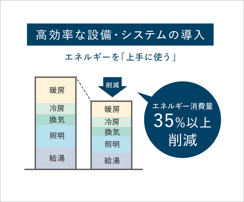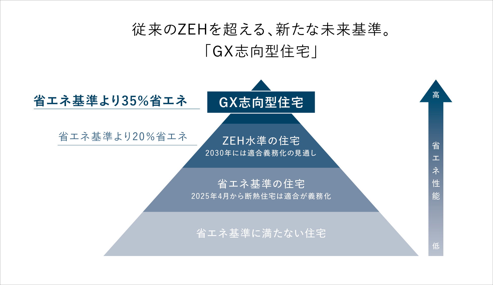 ※「GX志向型住宅」仕様:環境性能等級6以上を備え、再生可能エネルギーを除いた一次エネルギー消費量の削減率が35%以上、再生可能エネルギーを含む一次エネルギー消費量の削減率が50%以上(4・5階層の集合住宅の場合)