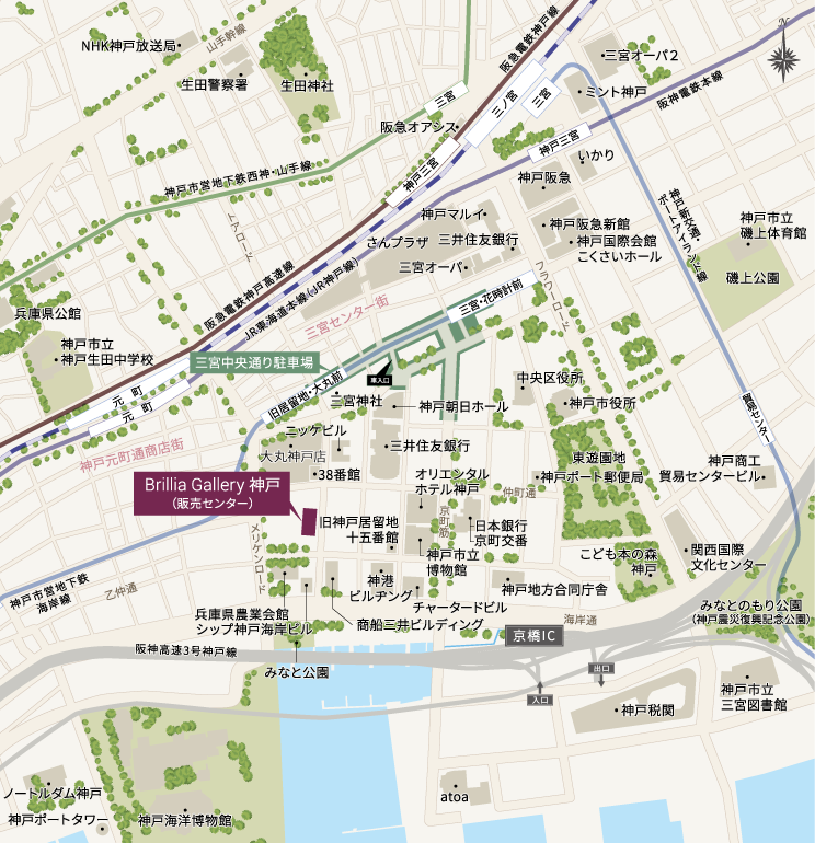 ≪ご注意ください≫ ➊お車でお越しの際は、下記、三宮中央通り駐車場をご利用ください。 ❷当ビルにエレベーターはございますが、本マンションギャラリーには通じておらず、エスカレーター・階段でのご案内となります。ベビーカー・車椅子等でのお越しの場合は事前にスタッフまでお申し付けください。